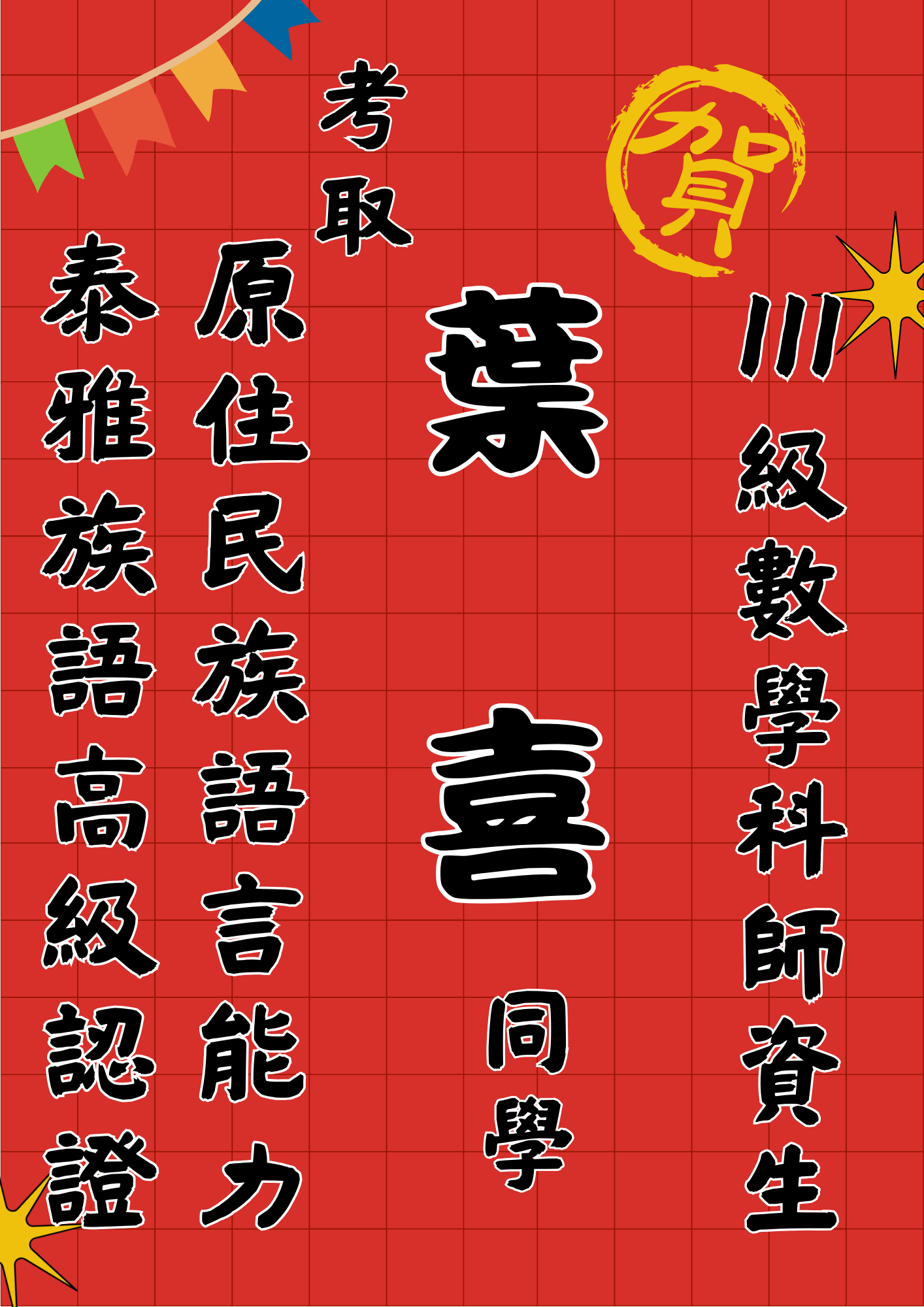 本系師資生葉喜同學,近日通過原住民族語言能力認證——泰雅族語「高級」等級,成績斐然,實屬難得!